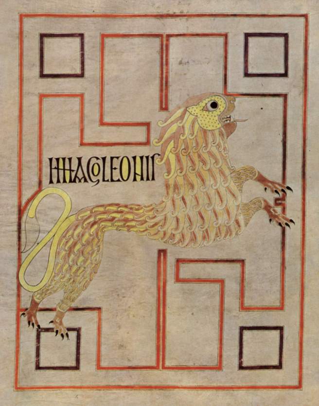 Woden peers at us from a page in a 12th century history book. Serpents and birds twine in the Lindisfarne Gospels and a lion leaps from the page of the Echternach Gospels, also produced in Lindisfarne.